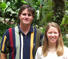 Keith took a lot of pictures today including several of me. I ate ice cream around 9:00 this morning while everyone else ate breakfast. There's also a picture of me walking down a very steep path with another steep path going up in front of me. Keith also likes to record the flowers he sees here. Today, he's got a pink one and a white one. I asked him to give me the camera so I could show you what he looks like today. :-)